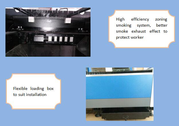 3. Vysoko účinný zónovací fajčiarsky systém na oboch stranách tela stroja, Silný segmentovaný prach a zhromažďovanie fajčenia, zníži to poškodenie pracovníkov.